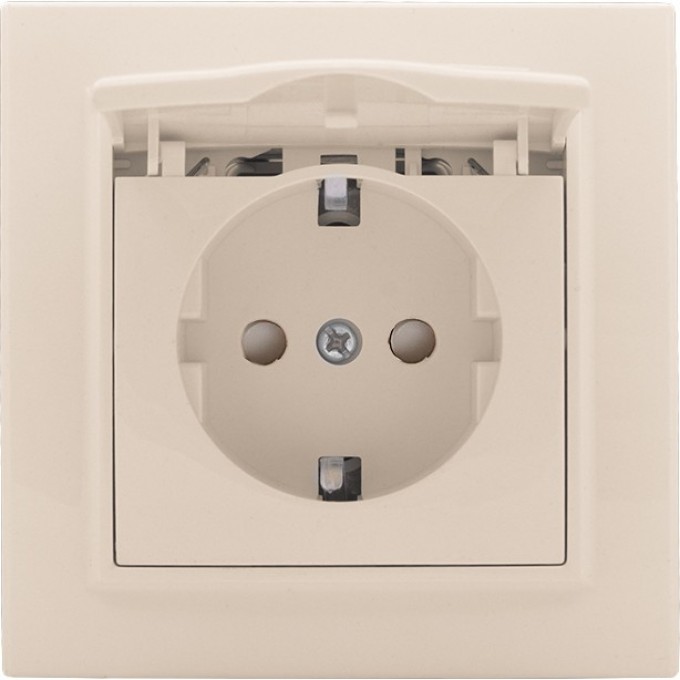 Розетка 1-местная EKF BASIC МИНСК СП с заземлением с крышкой 16А бежевая с защ. штор. ERR16-029-200