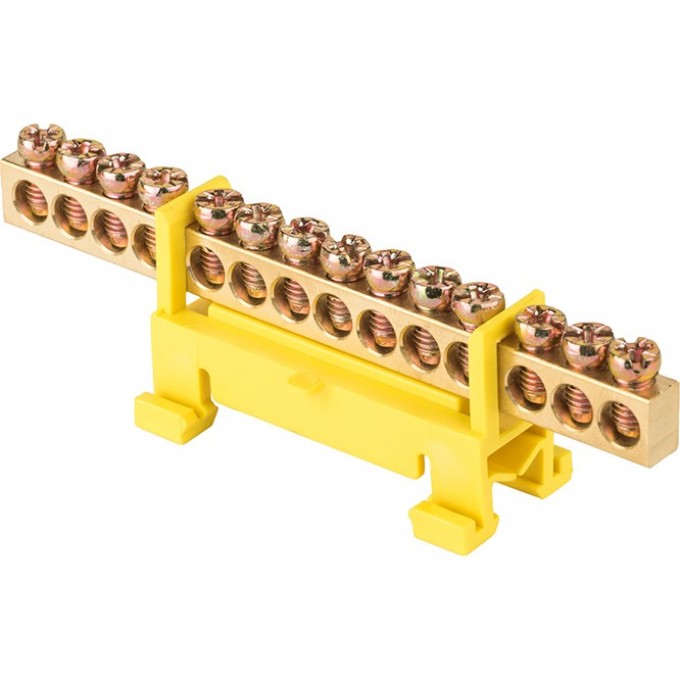 Шина EKF PROXIMA "0" PE 6х9мм 14 отверстий латунь желтый изолятор тип "Стойка" на DIN-рейку sn0-63-14-sy