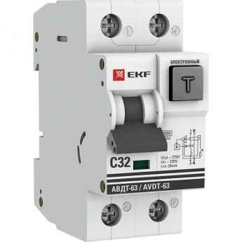 Автомат дифференциальный EKF PROXIMA АВДТ-63М 32А/ 30мА (1мод., хар.C, электронный тип AС) 6кА