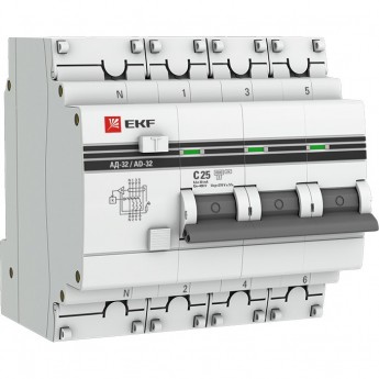 Автомат дифференциальный EKF PROXIMA АД-32 3P+N 25А/30мА (хар. C, AC, электронный, защита 270В) 4,5кА