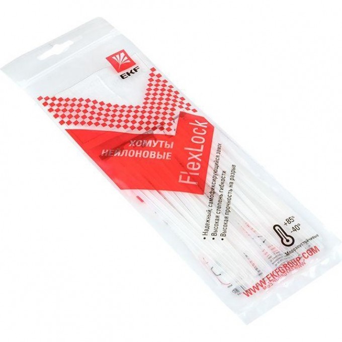 Хомуты FlexLock EKF PROxima предназначены для увязки кабелей и проводов в пучок и монтажа кабельных линий и проводников. Изготовлены из полиамида 6.6, который обладает хорошей устойчивостью к маслам, смазкам, масляным производным, хлоридным растворителям,